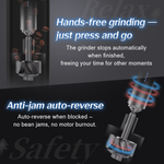 <li><strong>[Crush Beans, Not Your Motor]</strong> – Smart auto-reverse clears jams and protects the heart of this electric burr coffee grinder. One-touch start and auto-stop make the portable coffee grinder safe, simple, and consistent—so you focus on sipping, not babysitting.</li>